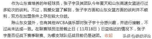 根据媒体人“我爱女篮”的爆料,张子宇新赛季能否顺利登陆WCBA目前仍有诸多不确定性。