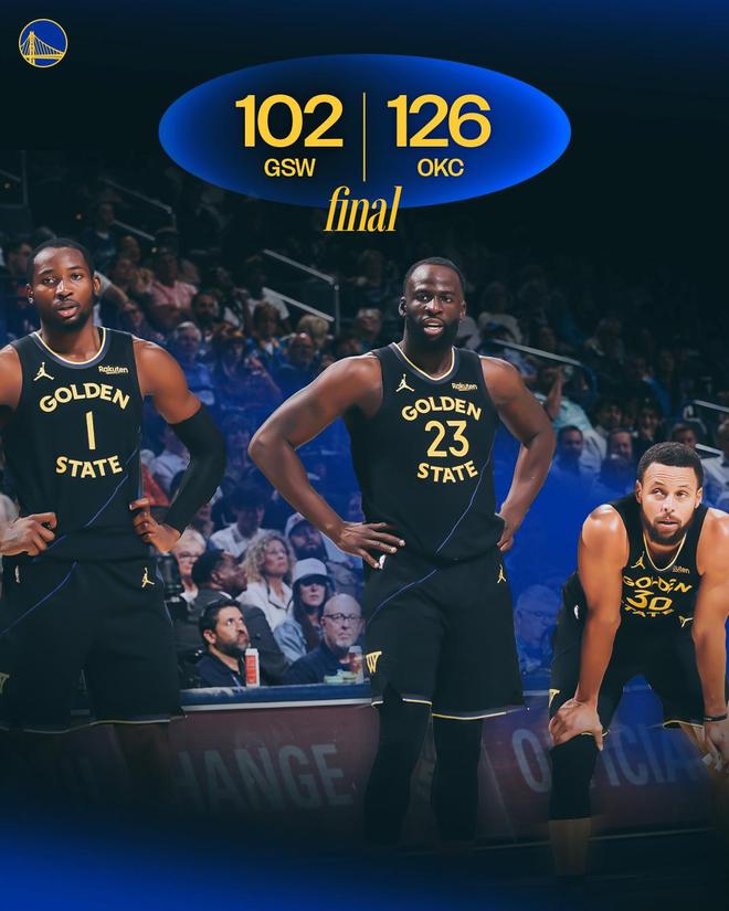 末节决战,科尔换上大部分板凳席末端的球员,选择提前弃子认负,比赛就此失去了悬念。两队在场上练兵,时间逐渐走完。最终,勇士以102比126完败雷霆。
