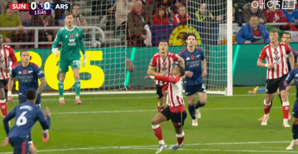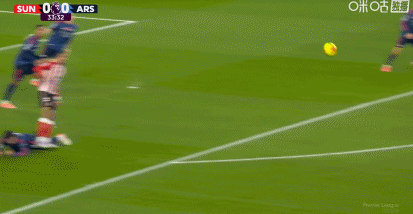 第34分钟,扎卡被判犯规,随后欲找倒地的梅里诺理论