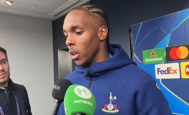 在欧冠主场3-0大胜布拉格斯拉维亚后,热刺前锋马蒂斯-特尔在混合采访区接受了采访。